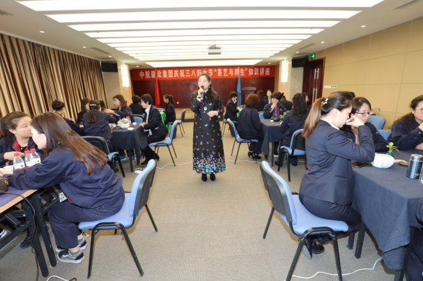 这次的知识讲座,是企业为纪念“三•八”国际劳动妇女节特意举办的,由工会和女工委员会组织。为举办好这次活动,工会邀请了专业的茶艺师,现场为大家讲解关于茶、茶文 化、如何泡茶等知识。女职工们认真学习了茶叶的分类、各类茶的冲泡方法、五行与茶的关系、盖碗与紫砂壶的手法等知识,在茶艺师的讲解和带领下,都亲自动手模仿标准的步骤手法泡茶。奉茶环节,大家其乐融融,互相称赞对方的茶艺优秀,将整个活动欢乐怡情的气氛烘托的更为浓厚。