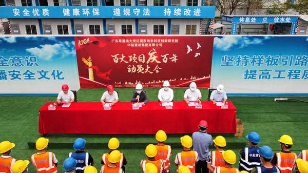 2021年3月29日上午,“百大项目庆百年”动员大会在集团公司承建的广州纳米生物安全中心总部园区一期项目现场隆重举行。建设单位广州纳米产业投资有限公司总经理李佩弦,广州珠江工程建设监理有限公司副总经理李晓光、分公司副总经理赵杰,广东省建筑设计研究院有限公司院副总工程师郭勇,恒峰g22官方网站-恒峰(中国)南方工程有限公司总经理、项目总指挥徐刚,项目书记招国樑以及各专业分包单位相关人员参加活动。